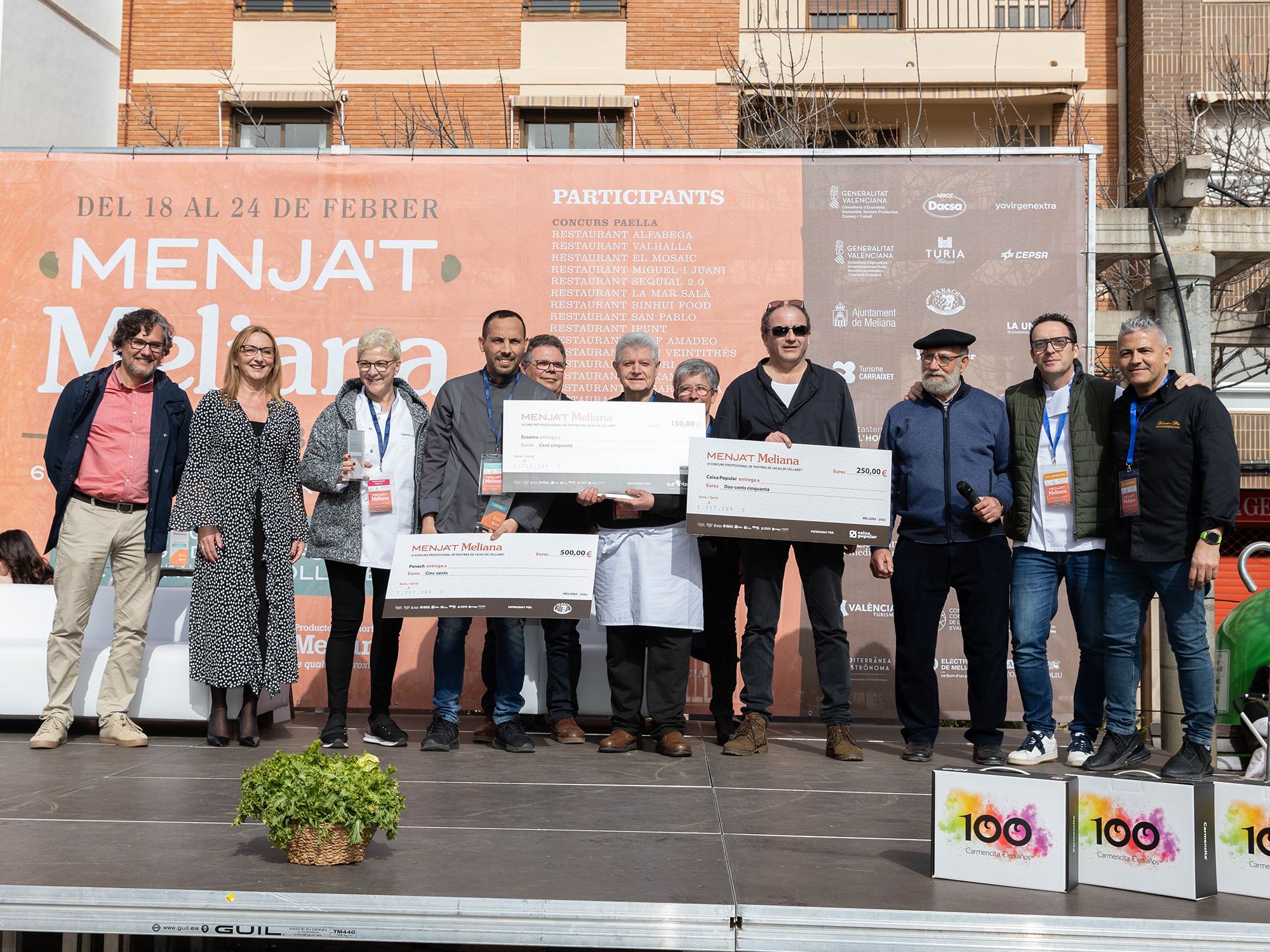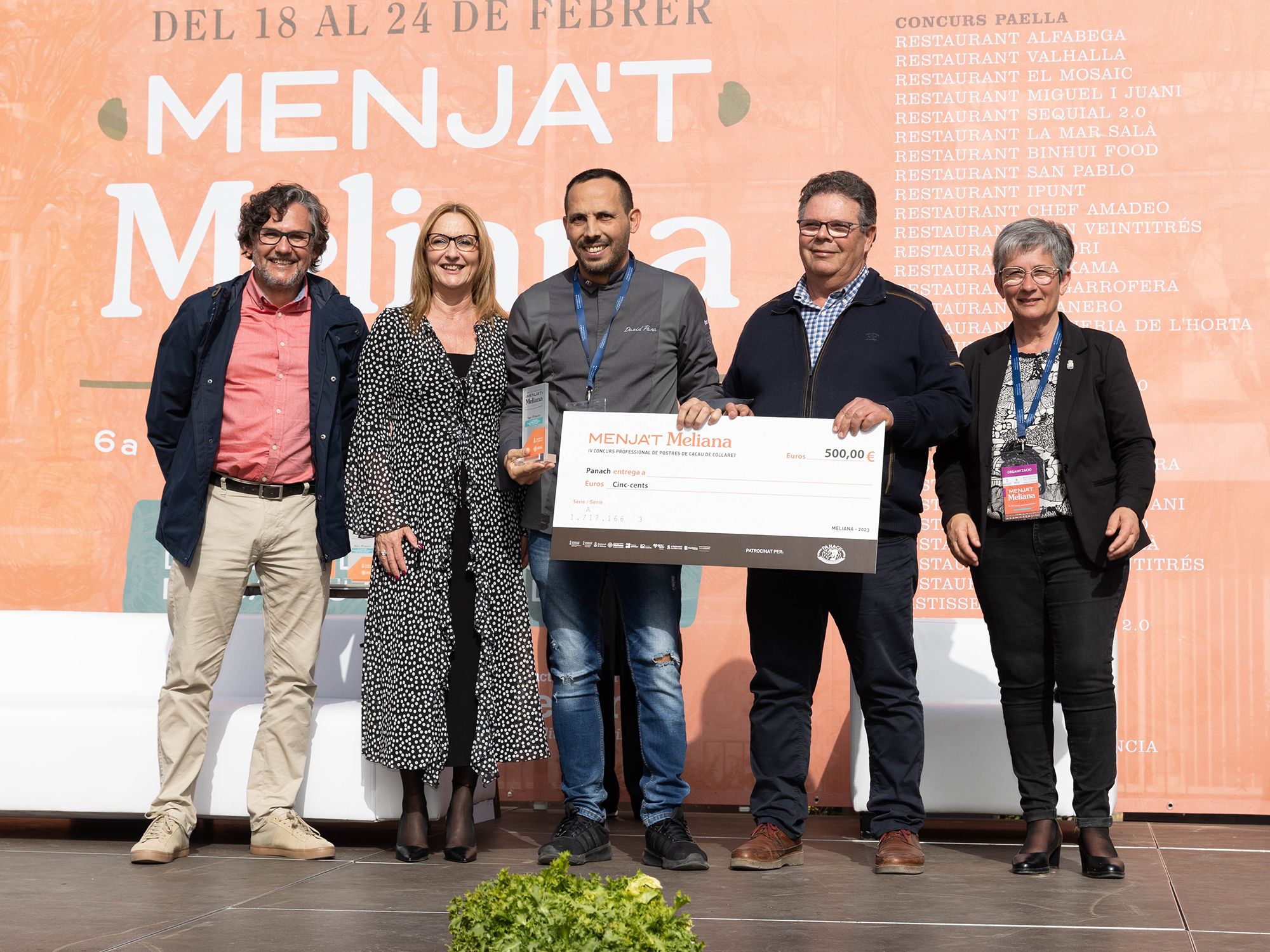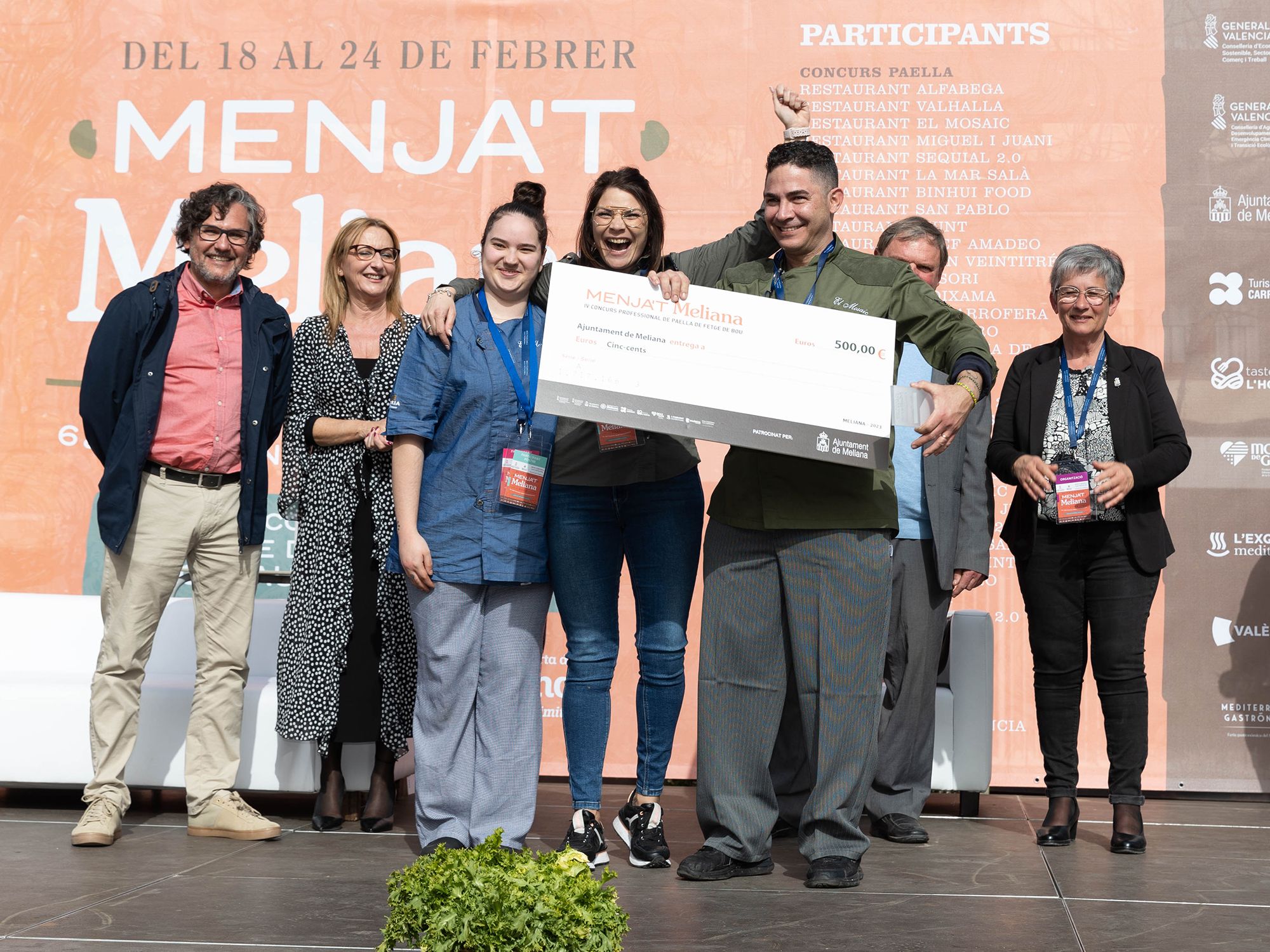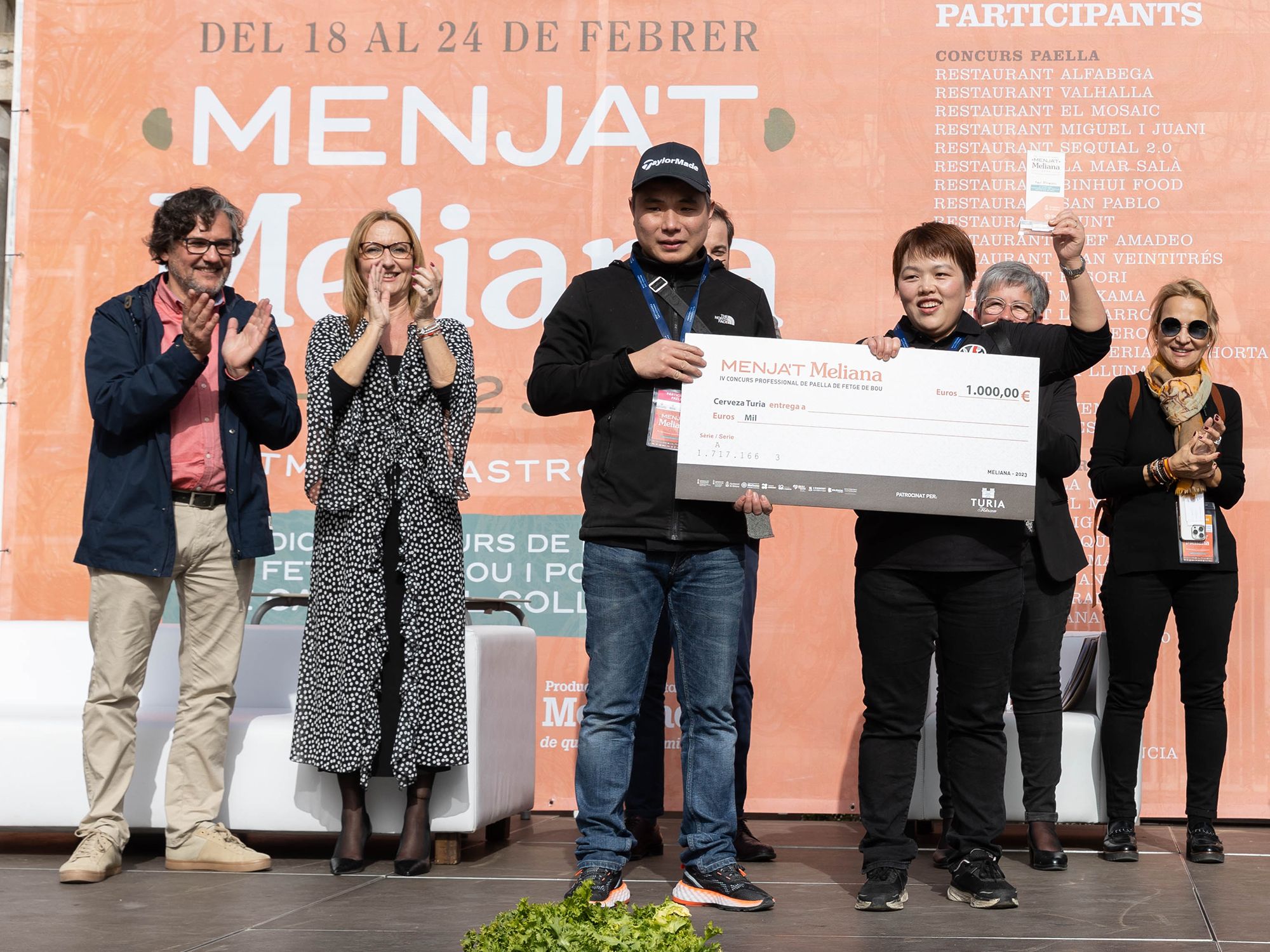 El jurado, compuesto por el chef José Manuel Miguel de Beat, Calp (1*Michelín, 2 Soles Repsol, Chef del año 2022 por la Academia de la Gastronomia de la CV); Juan Ramos, Jefe de cocina de Llisa Negra, del Grupo Quique Dacosta (Recomendado Michelín y Repsol); Ricardo Císcar, presidente de la DO Arroz de València y CEO de Dacsa; Belén Arias, Presidenta de la Academia de la Comunitat Valenciana y Pep Ferrer, de Ca Pepico (Roca), Recomendado en Guía Michelín y Repsol, ha deliberado a ciegas en un proceso a puerta cerrada con las paellas identificadas por letras. La puntuación se ha decantado por la paella de Binhui Food, del chef Binhui Jiang, quien ya se alzó con una tercera posición en la edición del 2022 y se convierte en habitual en los concursos de la Comunitat por su calidad como arrocero; el restaurante Sequial 20 de Sueca ha consolidado una merecida segunda posición, mientras que el tercer puesto ha recaído en el Restaurante El Mosaic ubicado en la misma localidad de Meliana. Muchos cocineros participaban por segunda y tercera vez, lo que confirma el interés del sector por recuperar esta tradicional paella de la Huerta Norte.